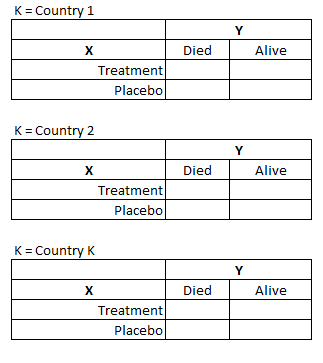 K = control/strata (often a potential confounder you want to control for)