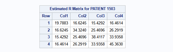 The estimated unstructured covariance matrix parameters are: