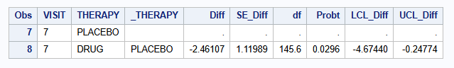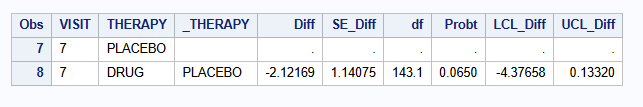 var VISIT THERAPY _THERAPY Diff SE_Diff df Probt LCL_Diff UCL_Diff;
