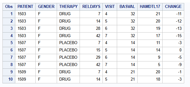 set HAMD_MAR_OUT(keep = VISIT THERAPY _THERAPY Diff SE_Diff df Probt LCL_Diff UCL_Diff);